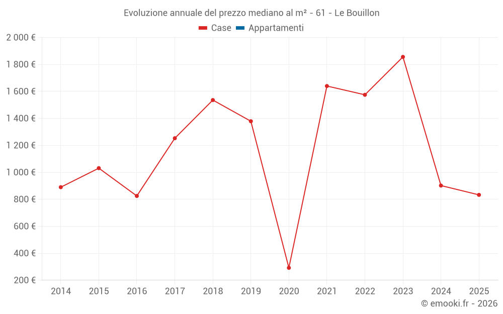 Evoluzione del prezzo mediano al m² degli appartamenti