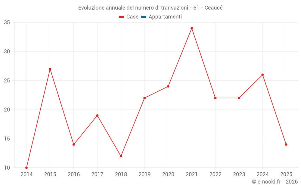 Il prezzo mediano sulle 30 transazioni di case degli ultimi 12 mesi nel comune di Ceaucé era di 1 105 € al metro quadrato per un valore patrimoniale mediano di 110 670 €. In questo periodo il 60% delle transazioni era tra 608 e 1 441 € al metro quadrato (dal 2° all'8° decile).
