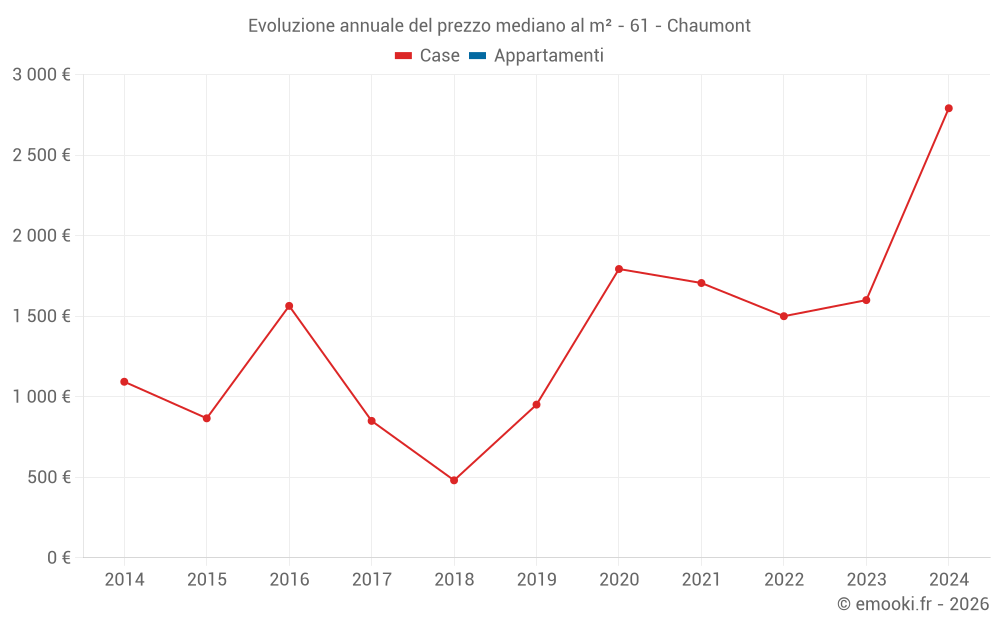 Evoluzione del prezzo mediano al m² degli appartamenti