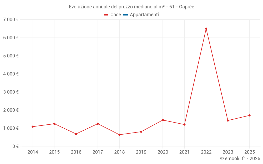 Evoluzione del prezzo mediano al m² degli appartamenti