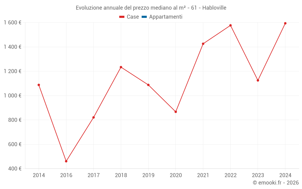 Evoluzione del prezzo mediano al m² degli appartamenti