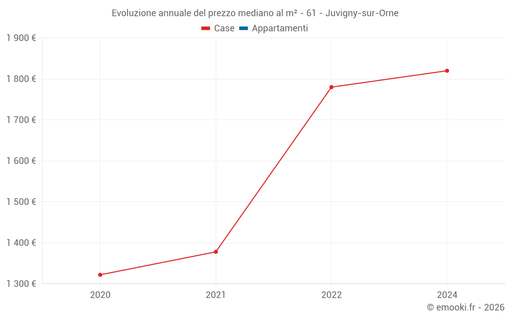 Evoluzione del prezzo mediano al m² degli appartamenti