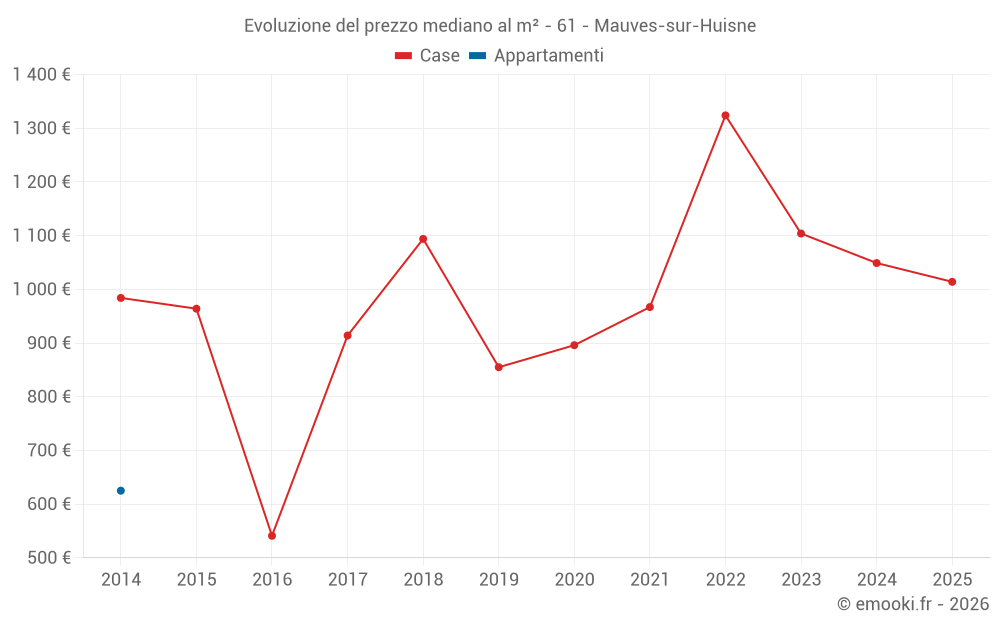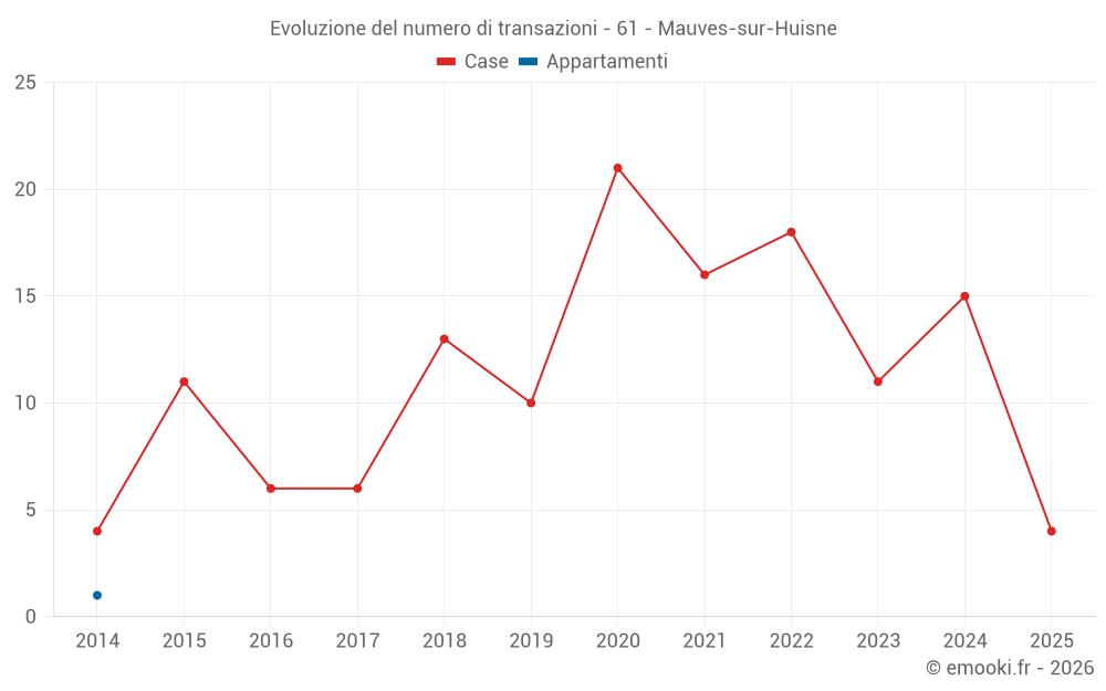 Il prezzo mediano sulle 27 transazioni di case degli ultimi 24 mesi nel comune di Mauves-sur-Huisne era di 1 104 € al metro quadrato per un valore patrimoniale mediano di 117 450 €. In questo periodo il 60% delle transazioni era tra 652 e 1 977 € al metro quadrato (dal 2° all'8° decile).