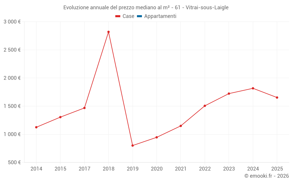 Evoluzione del prezzo mediano al m² degli appartamenti