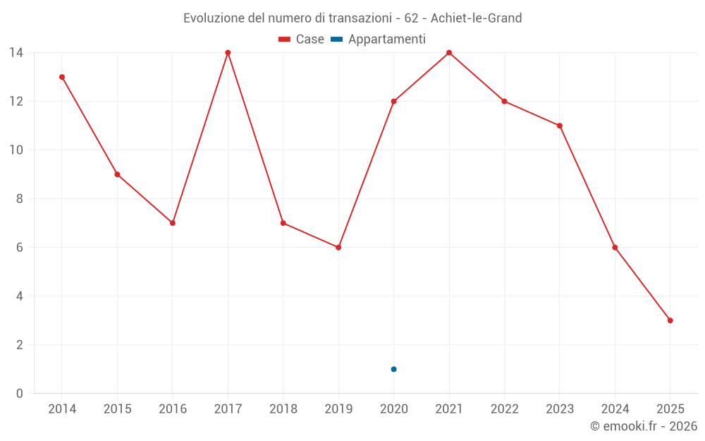 Il prezzo mediano sulle 15 transazioni di case degli ultimi 24 mesi nel comune di Achiet-le-Grand era di 1 352 € al metro quadrato per un valore patrimoniale mediano di 130 500 €. In questo periodo il 60% delle transazioni era tra 938 e 2 021 € al metro quadrato (dal 2° all'8° decile).