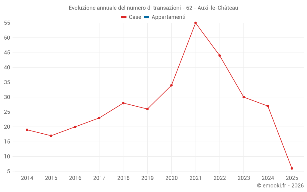 Il prezzo mediano sulle 20 transazioni di case degli ultimi 12 mesi nel comune di Auxi-le-Château era di 1 012 € al metro quadrato per un valore patrimoniale mediano di 86 750 €. In questo periodo il 60% delle transazioni era tra 674 e 1 333 € al metro quadrato (dal 2° all'8° decile).