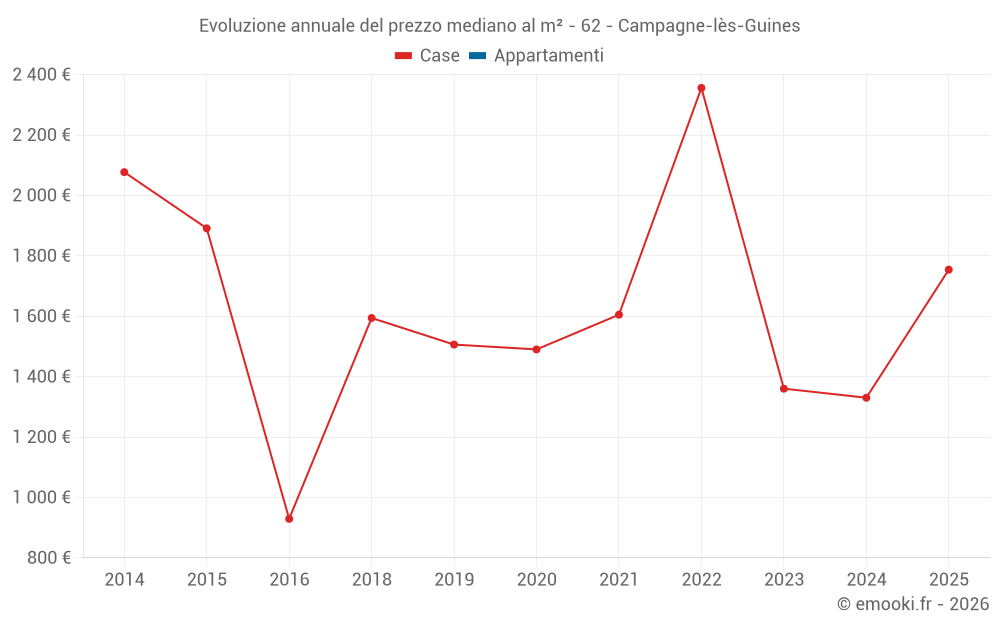 Evoluzione del prezzo mediano al m² degli appartamenti