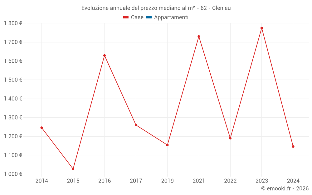 Evoluzione del prezzo mediano al m² degli appartamenti