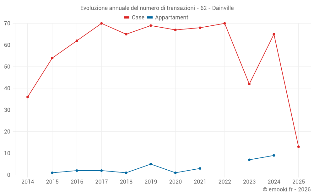 Il prezzo mediano sulle 53 transazioni di case degli ultimi 12 mesi nel comune di Dainville era di 1 947 € al metro quadrato per un valore patrimoniale mediano di 174 557 €. In questo periodo il 60% delle transazioni era tra 1 496 e 2 413 € al metro quadrato (dal 2° all'8° decile).