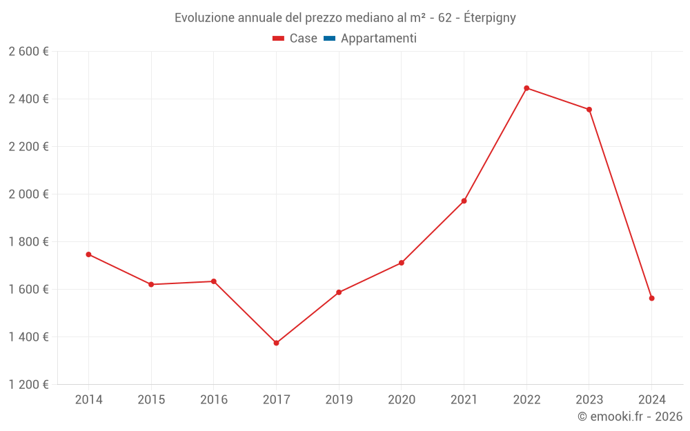 Evoluzione del prezzo mediano al m² degli appartamenti