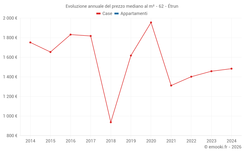 Evoluzione del prezzo mediano al m² degli appartamenti