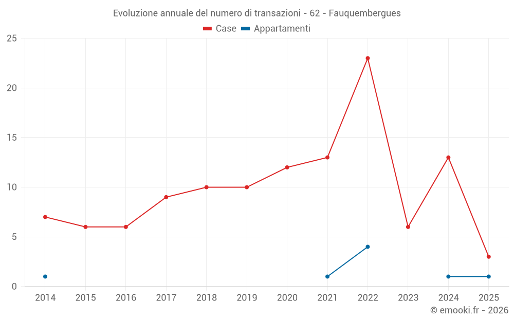 Il prezzo mediano sulle 20 transazioni di case degli ultimi 24 mesi nel comune di Fauquembergues era di 1 045 € al metro quadrato per un valore patrimoniale mediano di 82 000 €. In questo periodo il 60% delle transazioni era tra 664 e 1 500 € al metro quadrato (dal 2° all'8° decile).