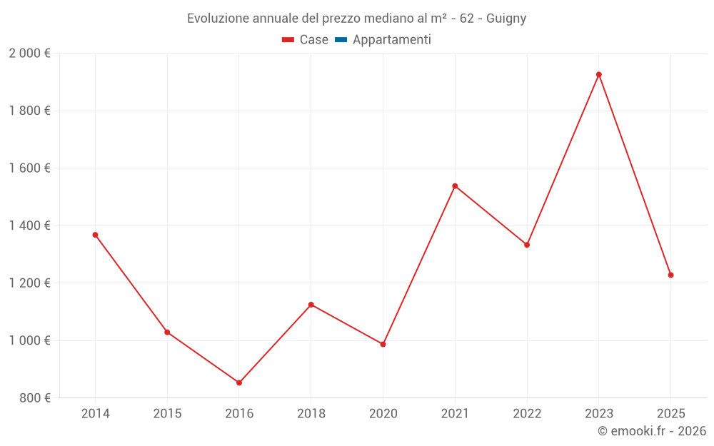 Evoluzione del prezzo mediano al m² degli appartamenti