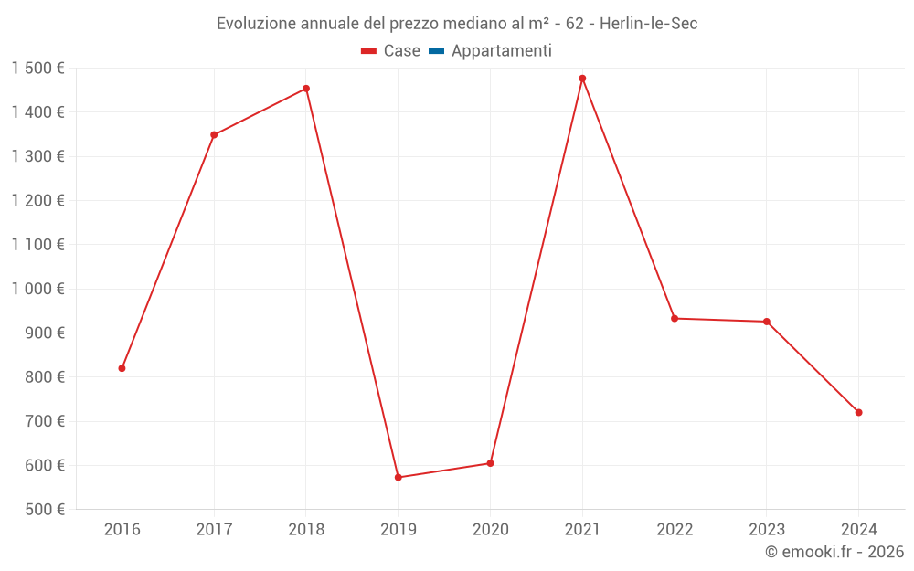 Evoluzione del prezzo mediano al m² degli appartamenti
