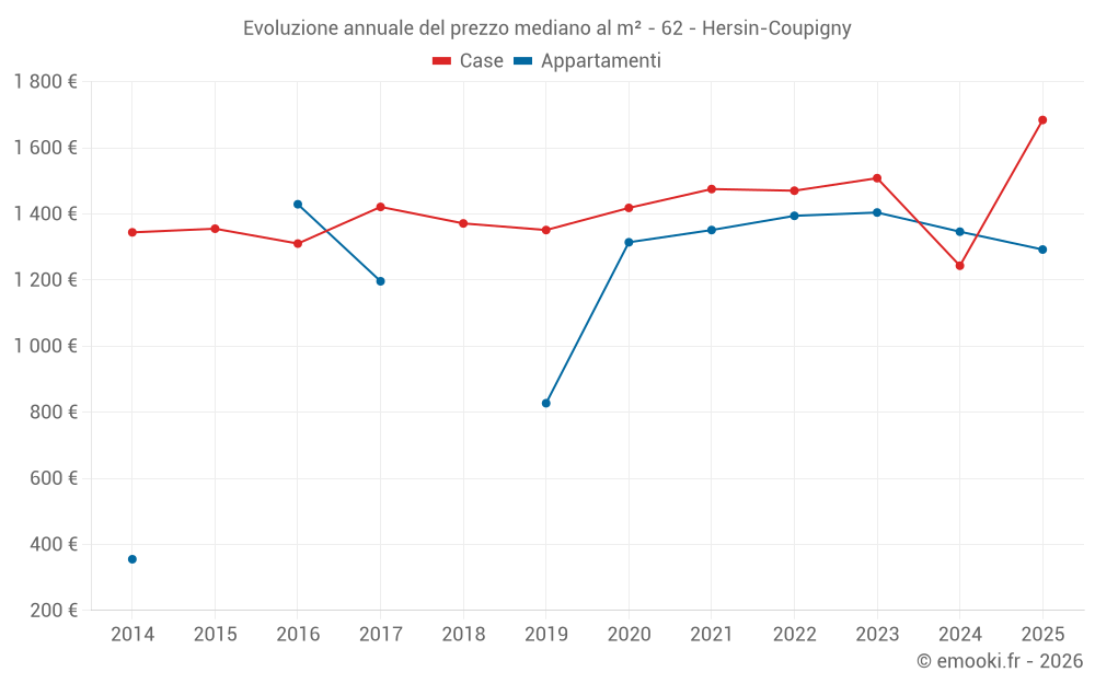 Qual è il prezzo al m2 delle case in Hersin-Coupigny?
