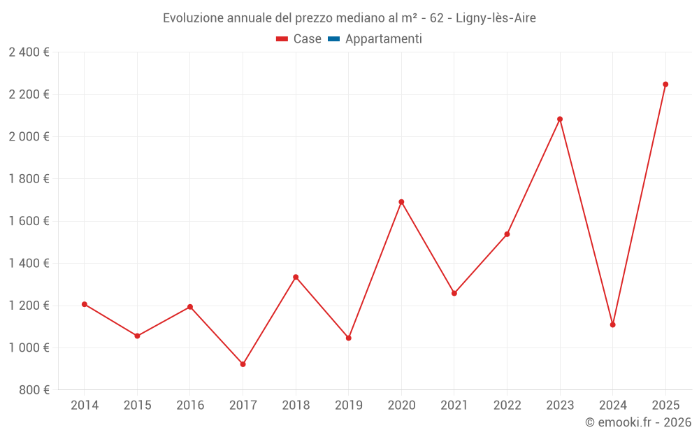 Evoluzione del prezzo mediano al m² degli appartamenti