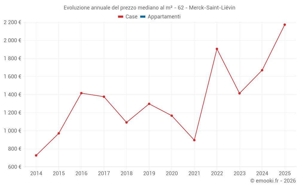 Evoluzione del prezzo mediano al m² degli appartamenti