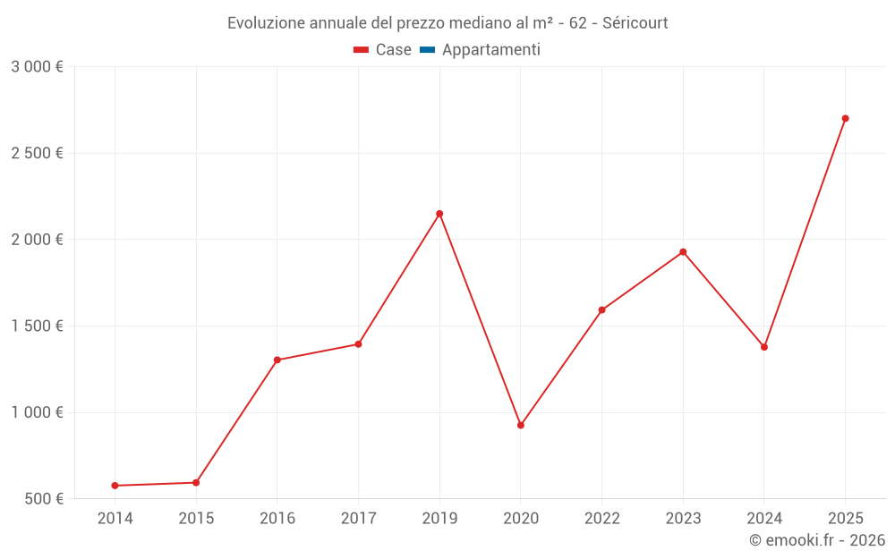 Evoluzione del prezzo mediano al m² degli appartamenti