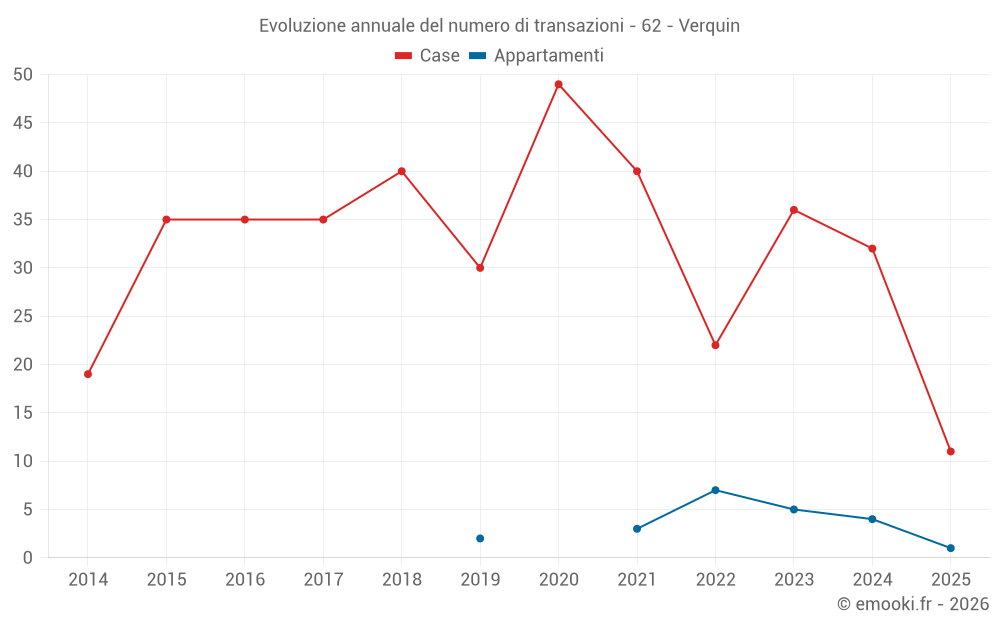 Il prezzo mediano sulle 26 transazioni di case degli ultimi 12 mesi nel comune di Verquin era di 1 488 € al metro quadrato per un valore patrimoniale mediano di 143 938 €. In questo periodo il 60% delle transazioni era tra 1 199 e 1 776 € al metro quadrato (dal 2° all'8° decile).
