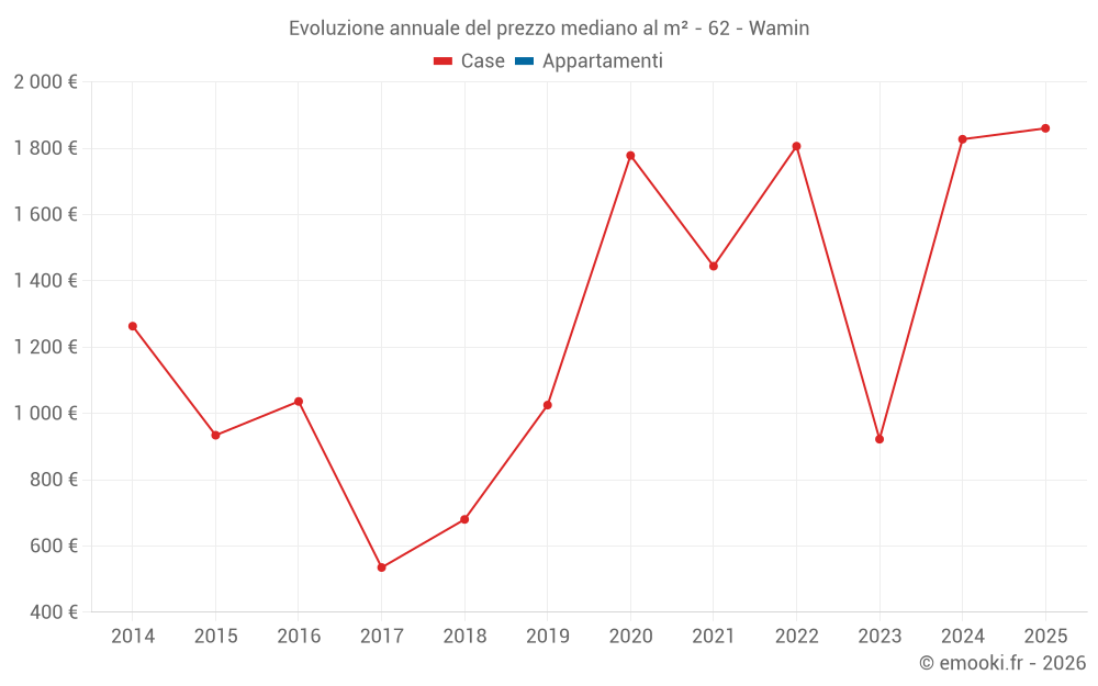 Evoluzione del prezzo mediano al m² degli appartamenti