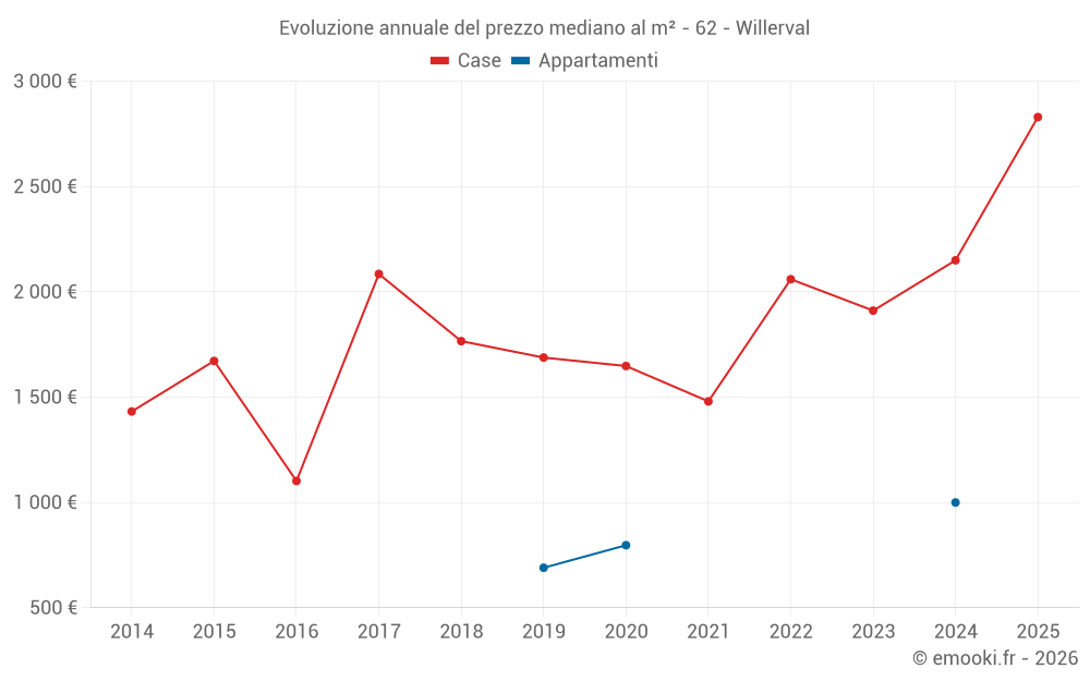 Evoluzione del prezzo mediano al m² degli appartamenti