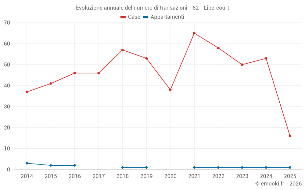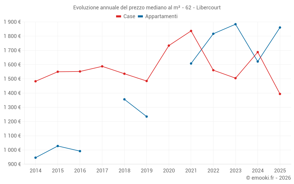 Il prezzo mediano sulle 45 transazioni di case degli ultimi 12 mesi nel comune di Libercourt era di 1 551 € al metro quadrato per un valore patrimoniale mediano di 138 000 €. In questo periodo il 60% delle transazioni era tra 1 198 e 2 234 € al metro quadrato (dal 2° all'8° decile).