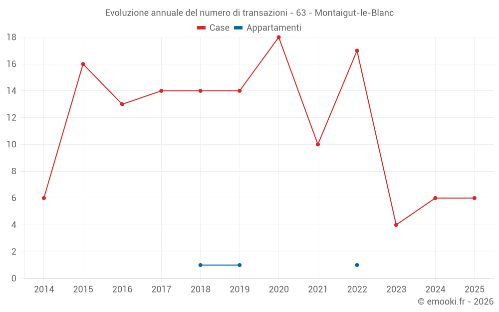 Il prezzo mediano sulle 14 transazioni di case degli ultimi 24 mesi nel comune di Montaigut-le-Blanc era di 1 651 € al metro quadrato per un valore patrimoniale mediano di 156 600 €. In questo periodo il 60% delle transazioni era tra 916 e 2 069 € al metro quadrato (dal 2° all'8° decile).