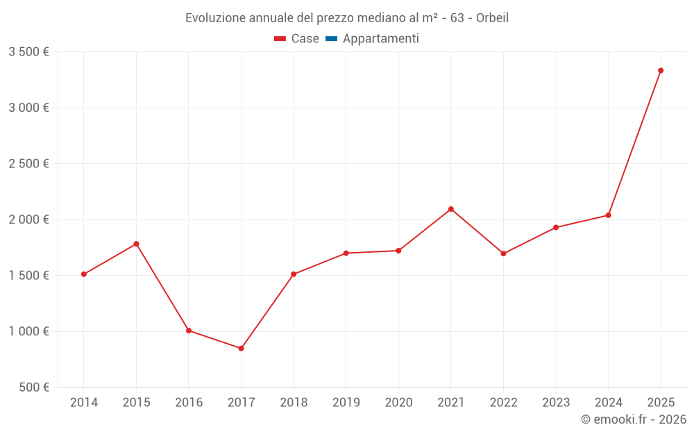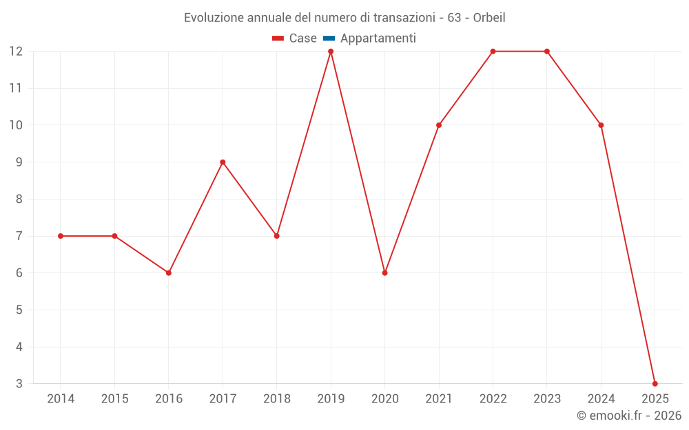 Il prezzo mediano sulle 20 transazioni di case degli ultimi 24 mesi nel comune di Orbeil era di 2 048 € al metro quadrato per un valore patrimoniale mediano di 152 500 €. In questo periodo il 60% delle transazioni era tra 1 091 e 2 617 € al metro quadrato (dal 2° all'8° decile).
