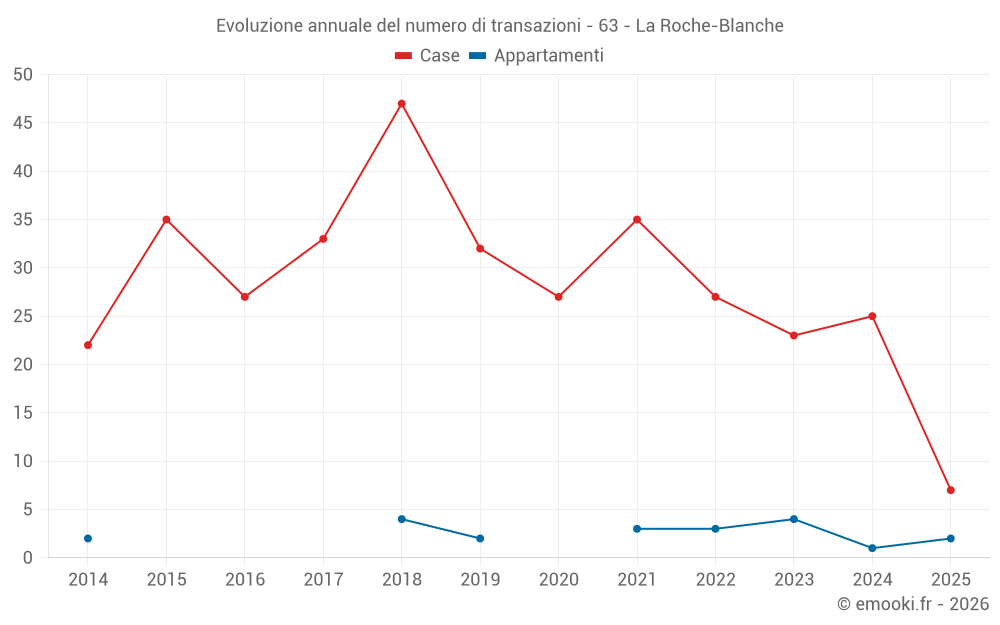 Il prezzo mediano sulle 25 transazioni di case degli ultimi 12 mesi nel comune di La Roche-Blanche era di 2 081 € al metro quadrato per un valore patrimoniale mediano di 221 000 €. In questo periodo il 60% delle transazioni era tra 1 255 e 2 802 € al metro quadrato (dal 2° all'8° decile).