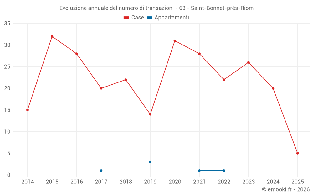 Il prezzo mediano sulle 17 transazioni di case degli ultimi 12 mesi nel comune di Saint-Bonnet-près-Riom era di 1 971 € al metro quadrato per un valore patrimoniale mediano di 200 680 €. In questo periodo il 60% delle transazioni era tra 1 675 e 2 357 € al metro quadrato (dal 2° all'8° decile).