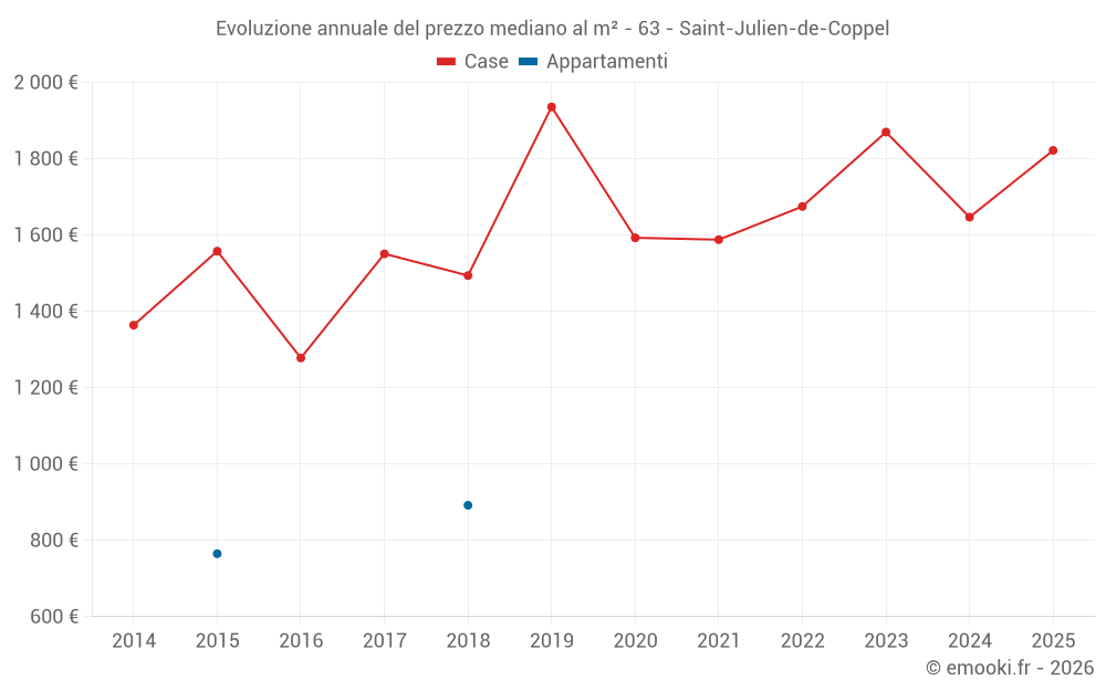 Il prezzo mediano sulle 16 transazioni di case degli ultimi 24 mesi nel comune di Saint-Julien-de-Coppel era di 1 358 € al metro quadrato per un valore patrimoniale mediano di 144 856 €. In questo periodo il 60% delle transazioni era tra 773 e 2 127 € al metro quadrato (dal 2° all'8° decile).