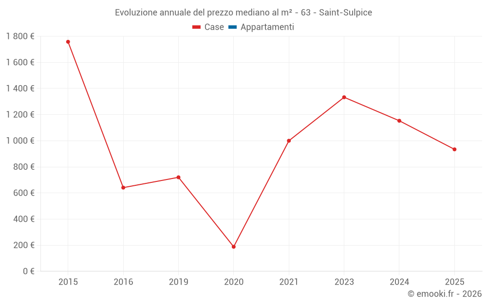 Evoluzione del prezzo mediano al m² degli appartamenti