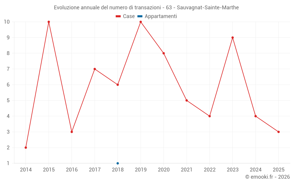 Il prezzo mediano sulle 14 transazioni di case degli ultimi 24 mesi nel comune di Sauvagnat-Sainte-Marthe era di 1 186 € al metro quadrato per un valore patrimoniale mediano di 132 500 €. In questo periodo il 60% delle transazioni era tra 834 e 2 157 € al metro quadrato (dal 2° all'8° decile).