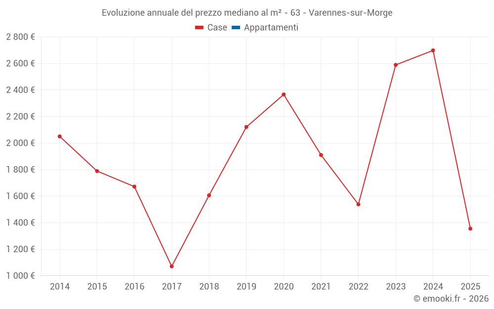 Evoluzione del prezzo mediano al m² degli appartamenti