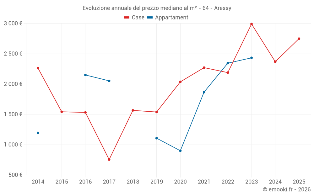Evoluzione del prezzo mediano al m² degli appartamenti
