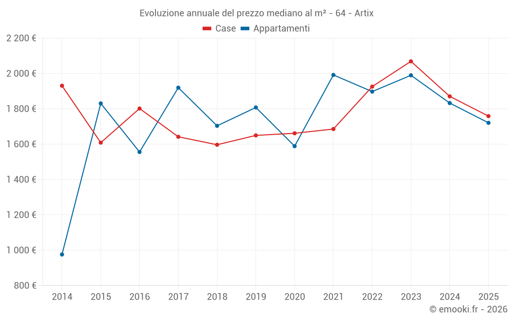 Qual è il prezzo al m2 delle case in Artix?