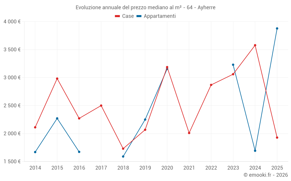 Evoluzione del prezzo mediano al m² degli appartamenti