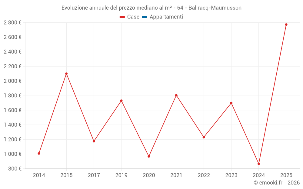 Evoluzione del prezzo mediano al m² degli appartamenti