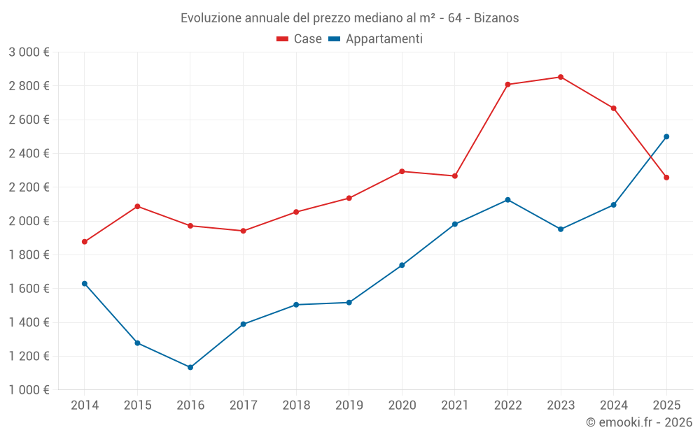 Qual è il prezzo al m2 delle case in Bizanos?