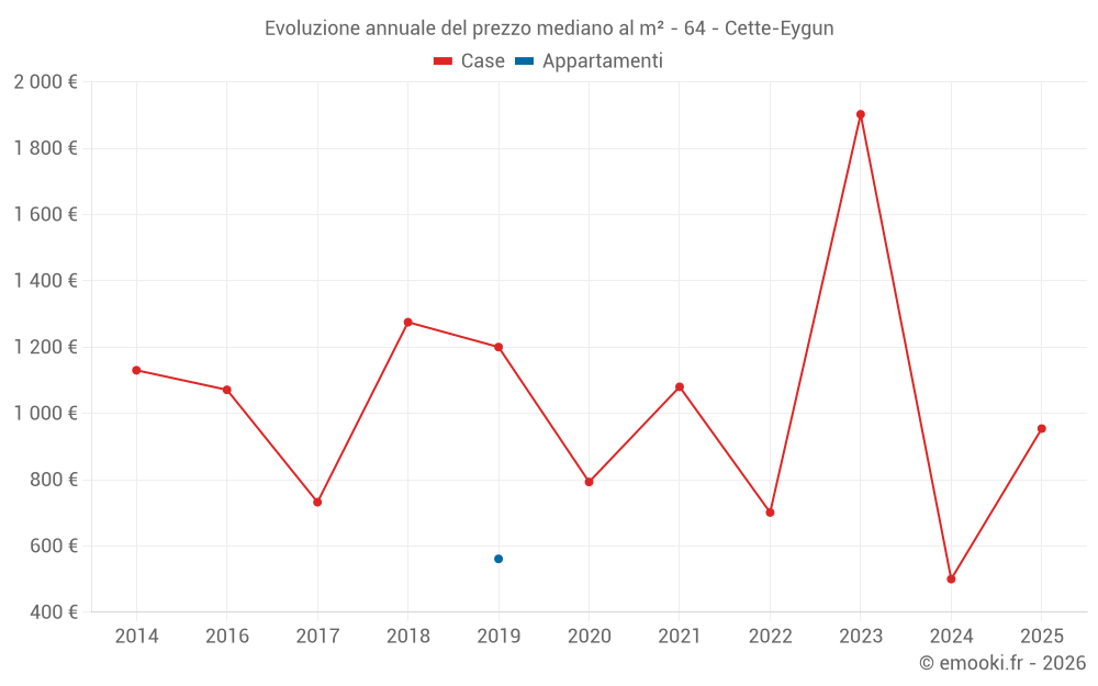 Evoluzione del prezzo mediano al m² degli appartamenti