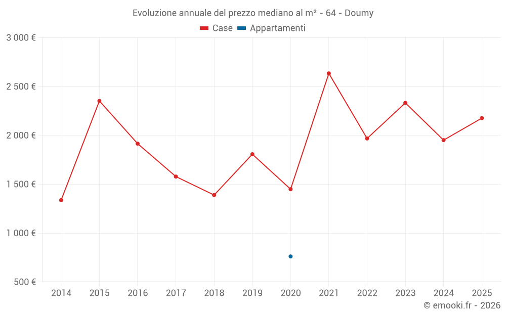 Evoluzione del prezzo mediano al m² degli appartamenti