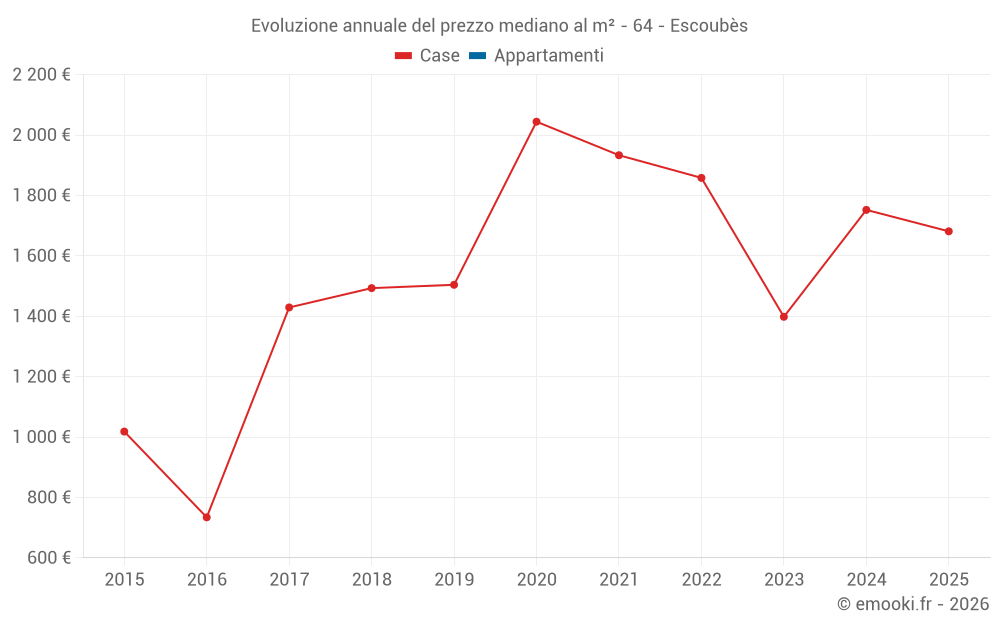 Evoluzione del prezzo mediano al m² degli appartamenti