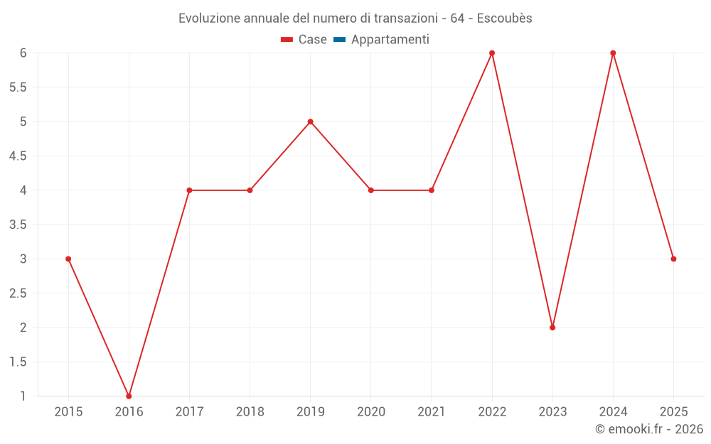 Attenzione, ultimo anno incompleto. Le proiezioni sono effettuate in base alle proporzioni tra semestri dell'anno precedente a livello dipartimentale/nazionale e per tipo di proprietà.