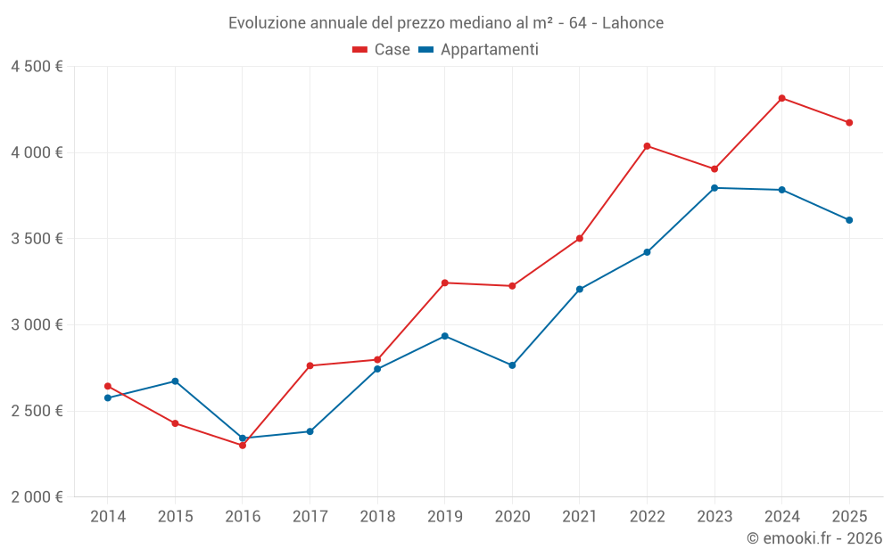 Qual è il prezzo al m2 degli appartamenti in Lahonce?