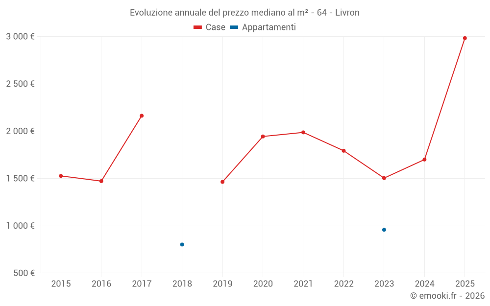 Evoluzione del prezzo mediano al m² degli appartamenti