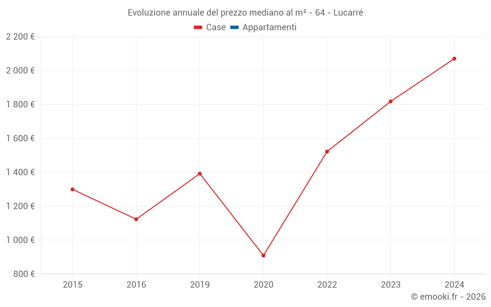 Evoluzione del prezzo mediano al m² degli appartamenti