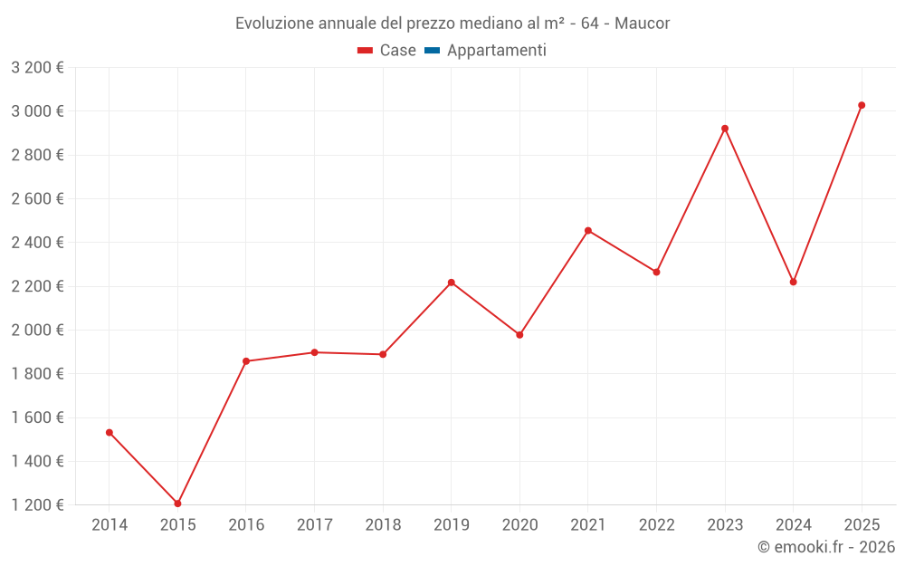 Evoluzione del prezzo mediano al m² degli appartamenti
