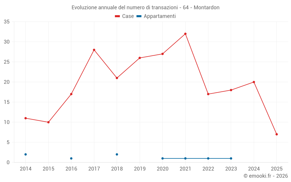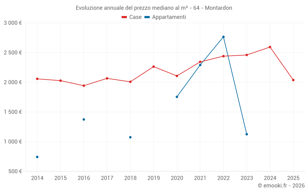 Il prezzo mediano sulle 20 transazioni di case degli ultimi 12 mesi nel comune di Montardon era di 2 199 € al metro quadrato per un valore patrimoniale mediano di 302 175 €. In questo periodo il 60% delle transazioni era tra 1 827 e 3 041 € al metro quadrato (dal 2° all'8° decile).