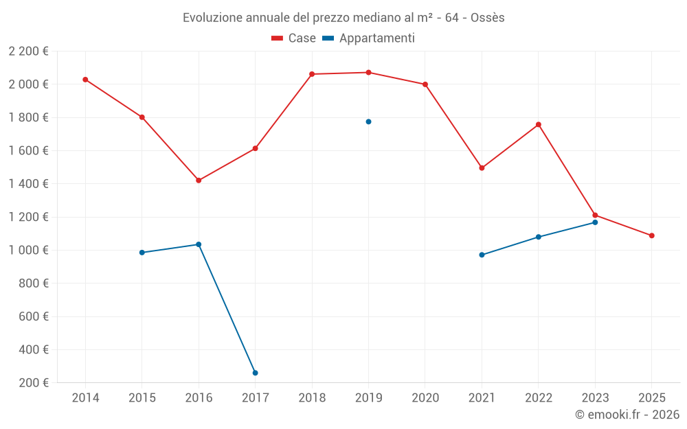 Evoluzione del prezzo mediano al m² degli appartamenti