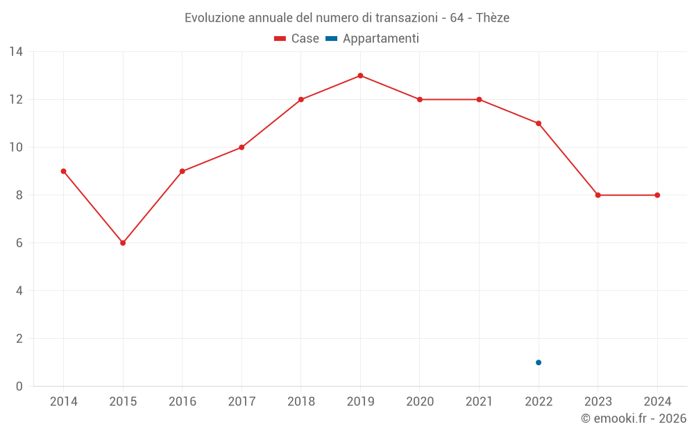 Il prezzo mediano sulle 14 transazioni di case degli ultimi 24 mesi nel comune di Thèze era di 2 001 € al metro quadrato per un valore patrimoniale mediano di 198 000 €. In questo periodo il 60% delle transazioni era tra 1 508 e 2 418 € al metro quadrato (dal 2° all'8° decile).